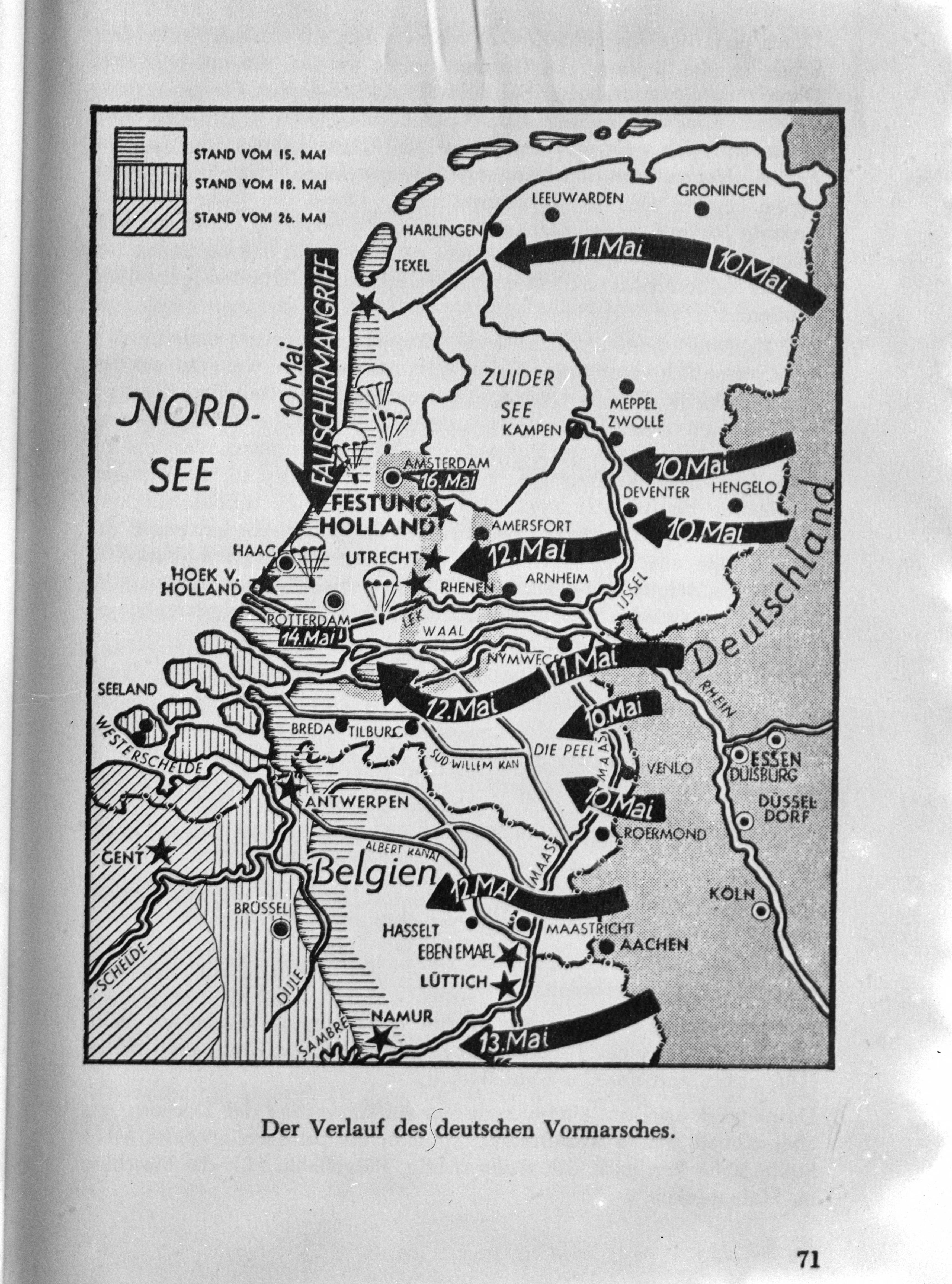 Kaart met weergave van de Duitse posities op 14 mei 1940
