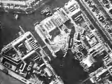Luchtopname. Geallieerde luchtaanvallen door 12 Lockheed Ventura's van 21 Squadron van de RAF op Den Helder. Opname van werfinstallaties vlak voor het bombardement