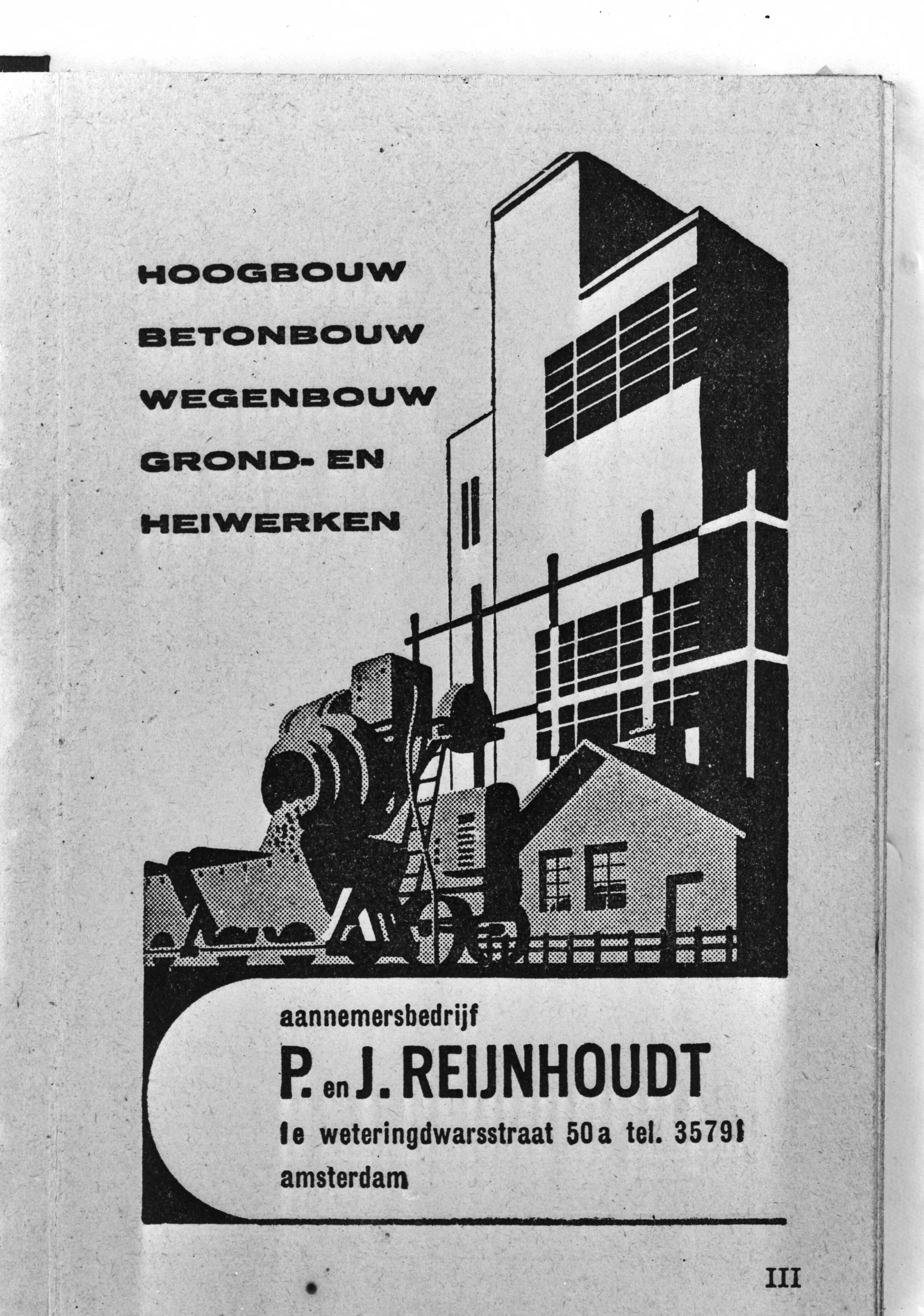 Advertentie Aannemersbedrjif P. en J. Reijnhoudt te Amsterdam