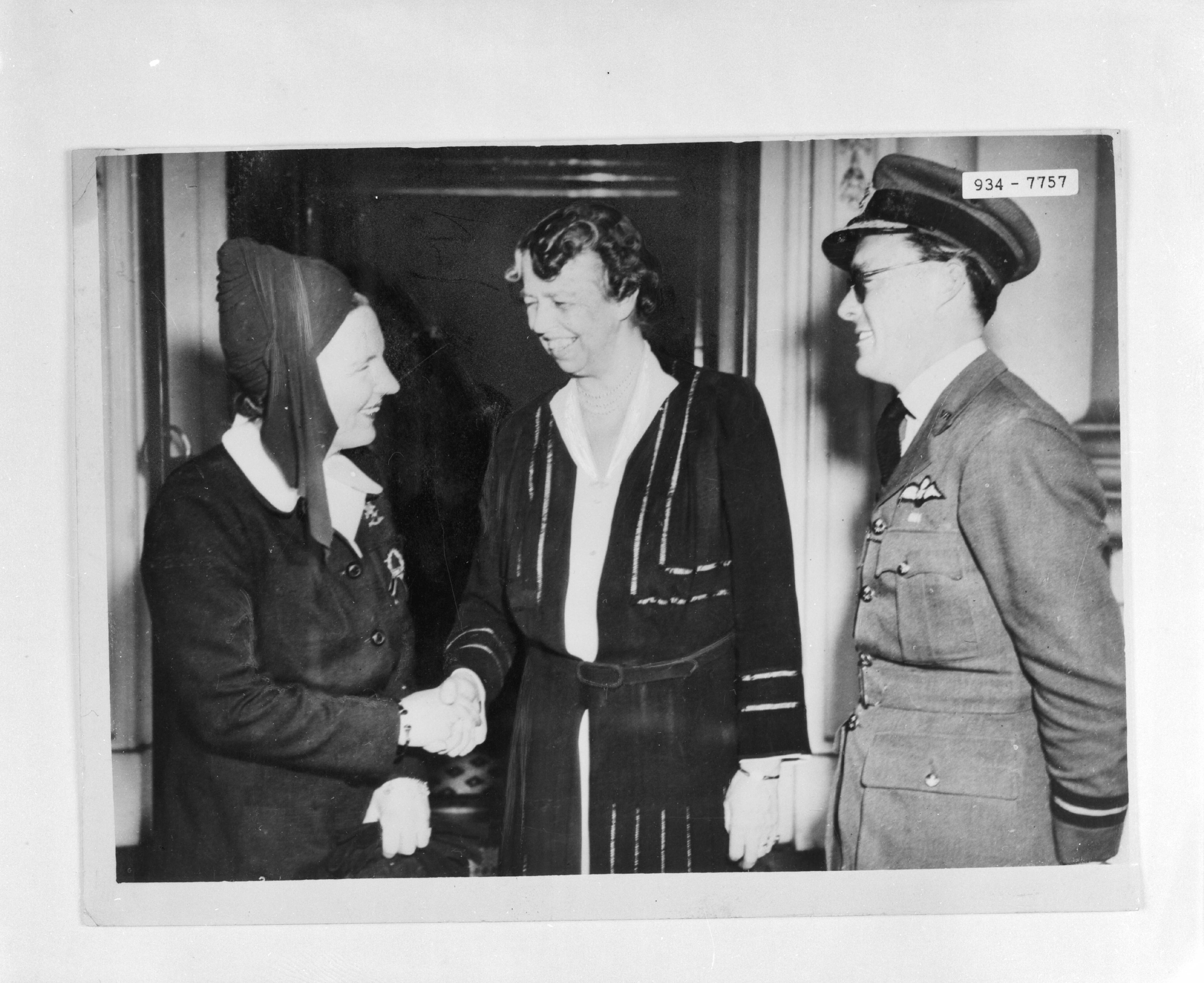 Prinses juliana en prins Bernhard verwelkomd door Eleanor Roosevelt op het Witte Huis