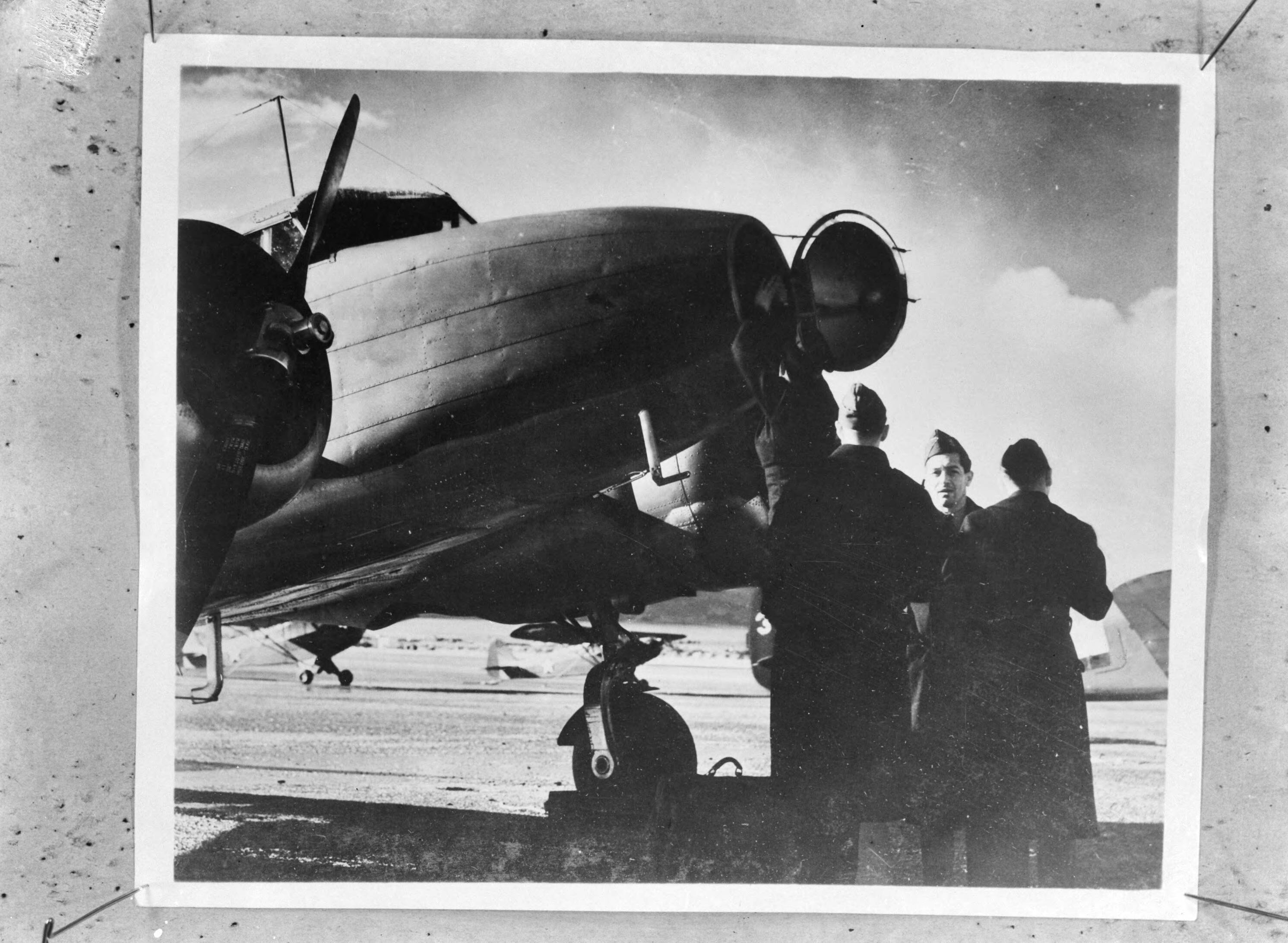 Nederlandse vliegtuigbemanningen in opleiding in de Verenigde Staten. Condor Air Base in het midden van de Mojave woestijn. De man met gezicht naar de camera is motorexpert luitenant De Jong
