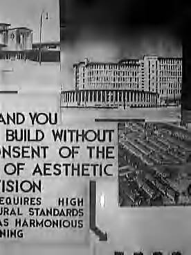 Panelen van de tenstoonstelling "Modern Dutch Architecture", 2e editie, opgezet door het Netherlands Information Bureau te New York. Ontwerp en teksten door P. Bromberg. Vergrotingen gemaakt door Superior Studios. Constructie van panelen etc, door Diorama Company