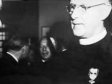 De voorzitter en de directeur van het Seaman's Church Institute in New York City ontvingen de onderscheiding van Officier in de Orde van Oranje-Nassau. Het Koninklijk Besluit wordt voorgelezen aan directeur dominee dr. Harold H. Kelley