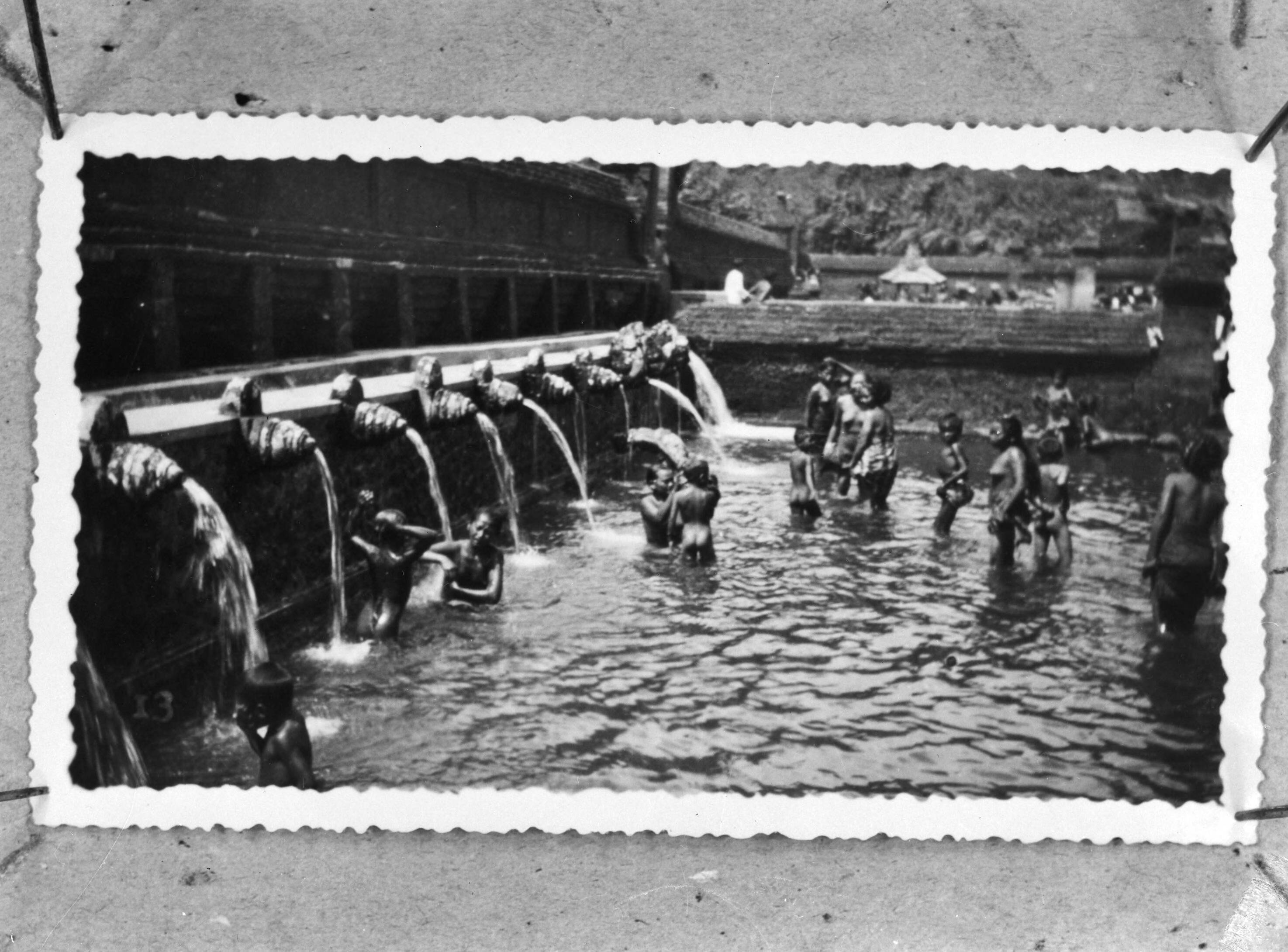 Balinese kinderen en vrouwen baden in een tempelcomplex