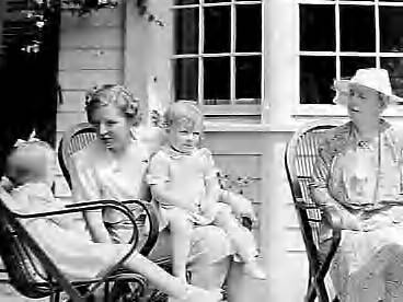 Koningin Wilhelmina met prinses Juliana en kleinkinderen op haar zomerverblijf te Lee (Massachusetts)