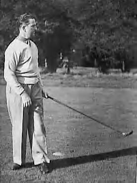Golfwedstrijd tussen België en Nederland op Walton Heath. Majoor P. Lejeune (België) bekijkt zijn drive vanaf de 1ste tee