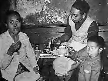 Serie "Javanen in Australië" zijn waarschijnlijk Sumatranen, red. Door gebrek aan ruimte eten de vluchtelingen in kleine groepen. Mardi, een loodgieter, zijn vrouw Lumpok en zoon Samsudin.