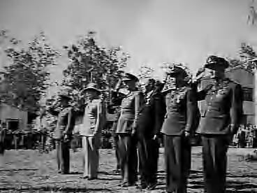 Luitenant-generaal L.M. van Oyen, opperbevelhebber van het KNIL, decoreerde sergeant M.C. Kokkelink met de Militaire Willemsorde te Camp Columbia in Brisbane. Sergeant Kokkelink was de leider van een groep Nederlands-Indische guerrillas die gedurende tweeeneenhalf jaar de Japanners bevochten op de Vogelkop in Nieuw-Guinea. vlnr: luitenant-kolonel G.A. de Stoppelaar; luitenant-gouverneur-generaal dr. H.J. van Mook; luitenant-generaal L.H. van Oyen, opperbevelhebber van het KNIL; generaal-majoor N.L. W. van Straten, chef-staf KNIL; baron F.C. van Aerssen Beyeren van Voshol, Nederlands ambassadeur in Australië; kapitein F.J.W. den Ouden, KNIL Luchtmacht; kapitein A.A.M van Rest, KNIL luchtmacht. De laatste drie zijn ook houder van de Militaire Willemsorde