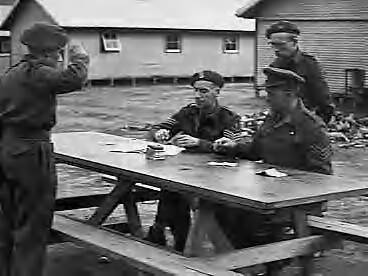Nederlandse recruten van het KNIL uit Europa in training op Camp Darley, Victoria (Australië). Een recruut ontvangt de eerste uitbetaling