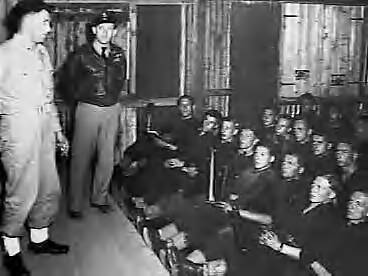 Rcruten van de luchtvaart- en de legerafdeling van het KNIL krijgen een training in Camp St. Ives, Bradfield Park (Sydney, Australië). Recruten krijgen instructie over nachtoperaties van de Australische luchtmachtofficier Gatehouse