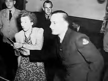 Recruten van de luchtvaart- en de legerafdeling van het KNIL krijgen een training in Camp St. Ives, Bradfield Park (Sydney, Australië). Recruten bekijken een estafette tafeltennis in de Pymble Canteen. De gastvrouw van de kantine, Aileen Bridgeman, een secretaresse uit Waitara, krijgt het batje aangegeven door soldaat Doomen uit Eindhoven