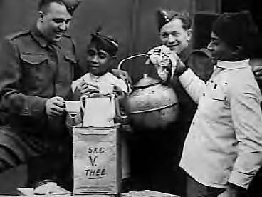 Prinses Irene Brigade in Wolverhampton ontvangt 30.000 pond thee als geschenk van theeplanters in Nederlands-Indië.