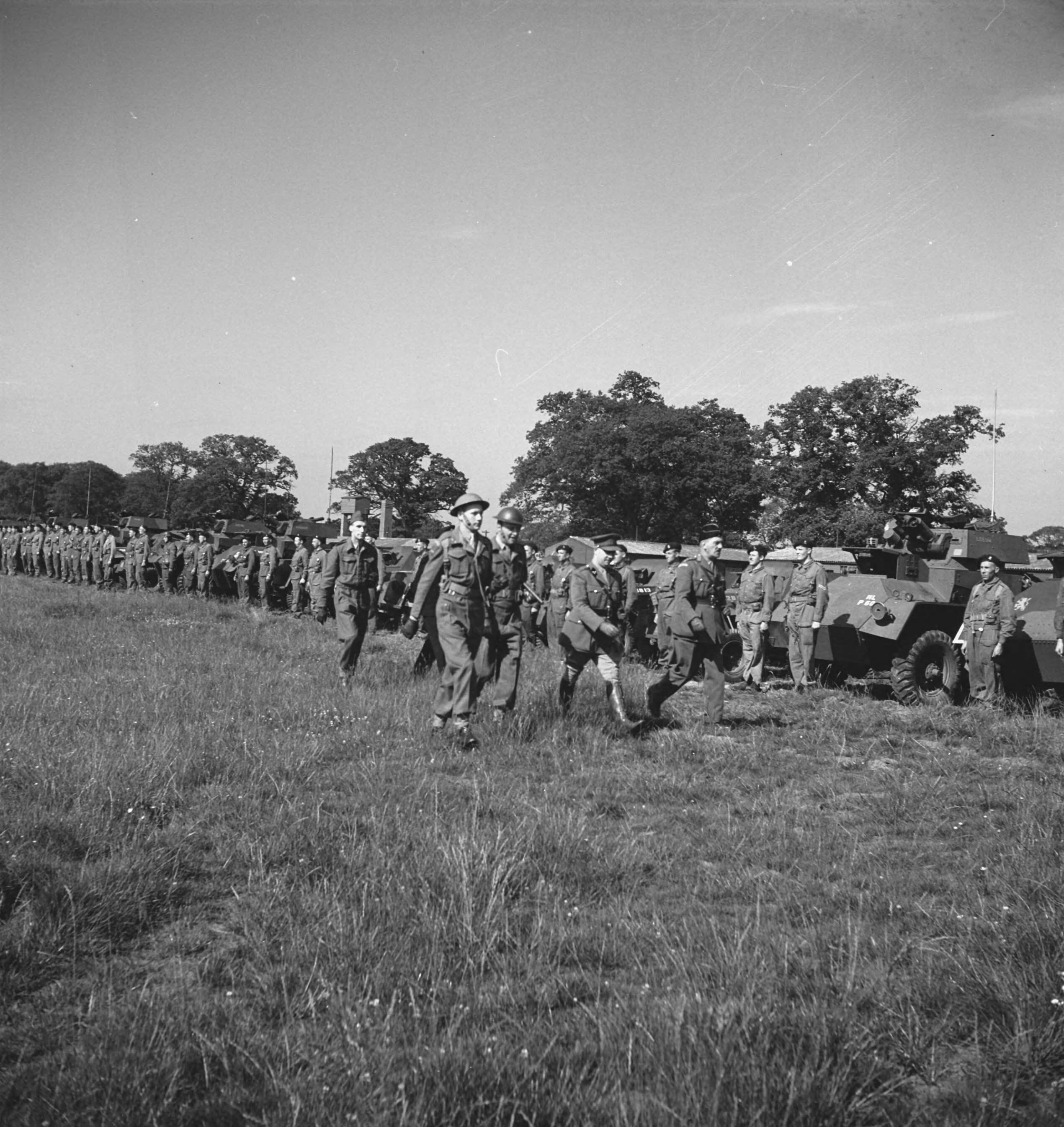 Prinses Irene Brigade."`12. An inspection by Gen. Phaff accompanied by the officers of the Brigade HQ". Een inspectie van generaal Phaff vergezeld door officieren van het brigade hoofdkwartier