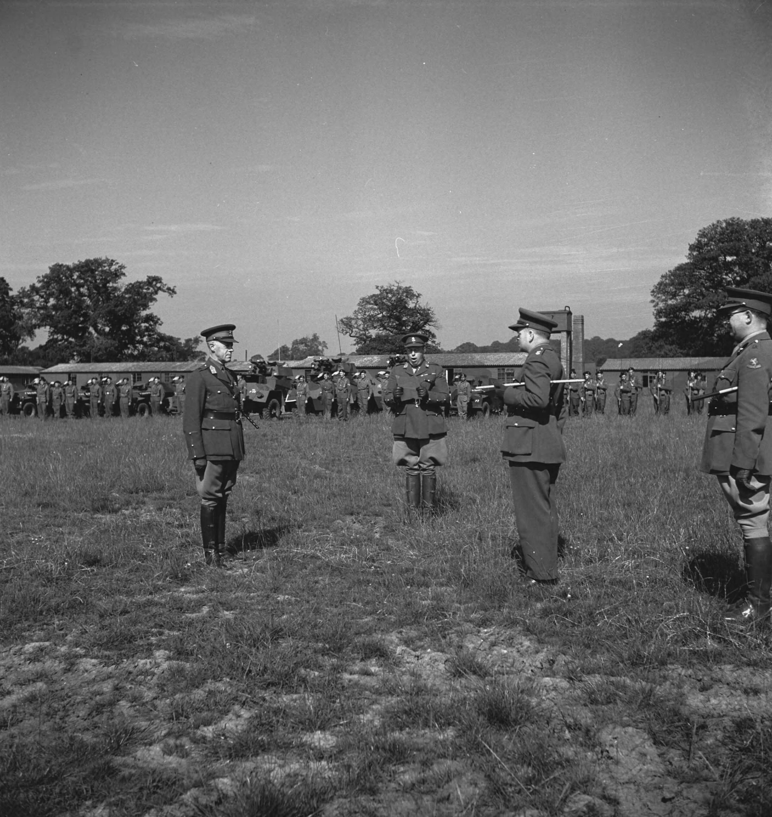 Prinses Irene Brigade."`14. Col. Jones being decorated with the commandeur Cross of Oranje Nassau. Capt. Lawick van Pabst reading the Royal decree. On the left gen. Phaff". Kolonel Jones ontvangt de onderscheiding van commandeur in de Orde van Oranje-Nassau. Kapitein Lawick van Pabst leest het Koninklijk Besluit. Links generaal Phaff
