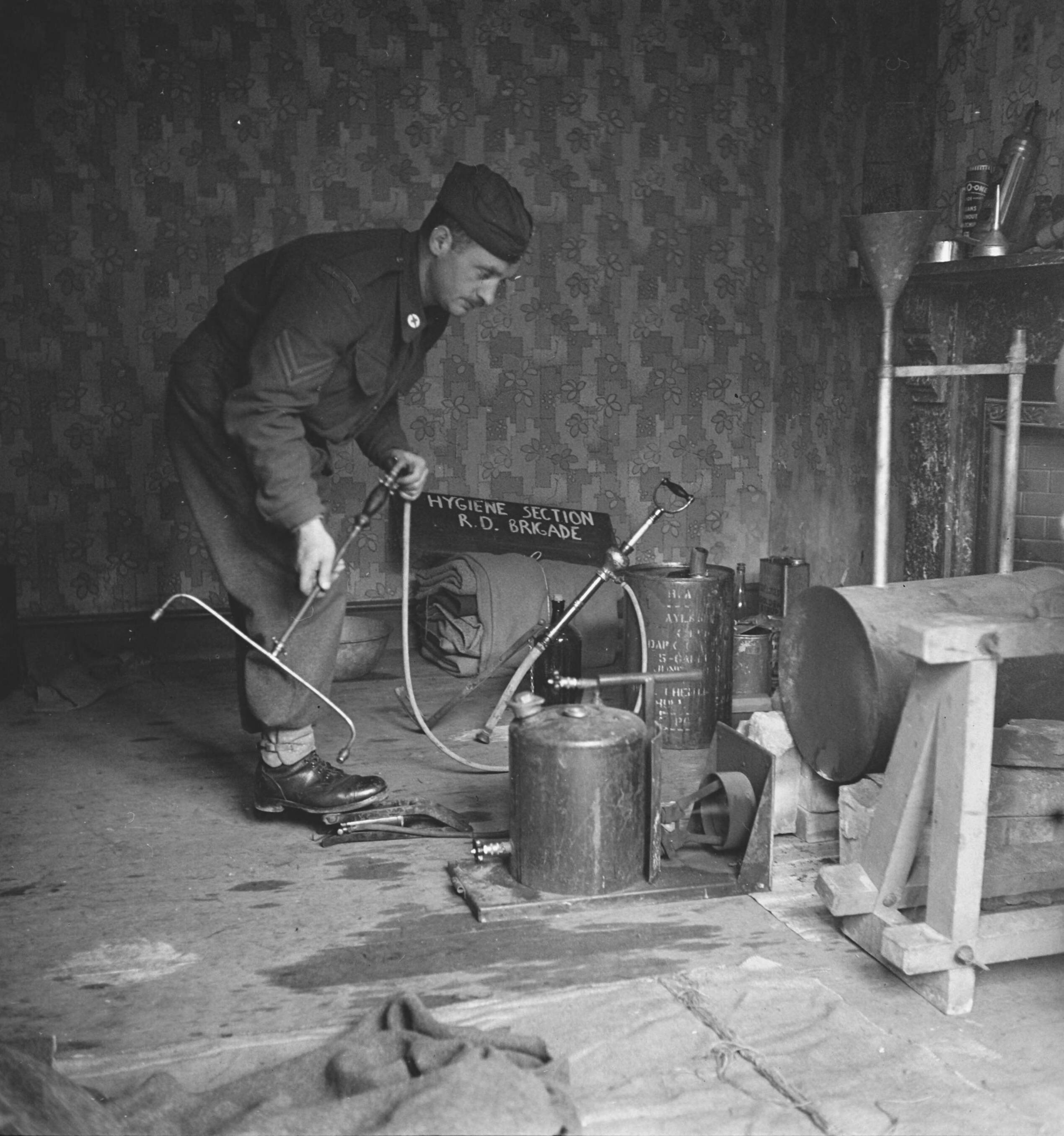 Prinses Irene Brigade. In training. Hygiëne sectie aan het werk