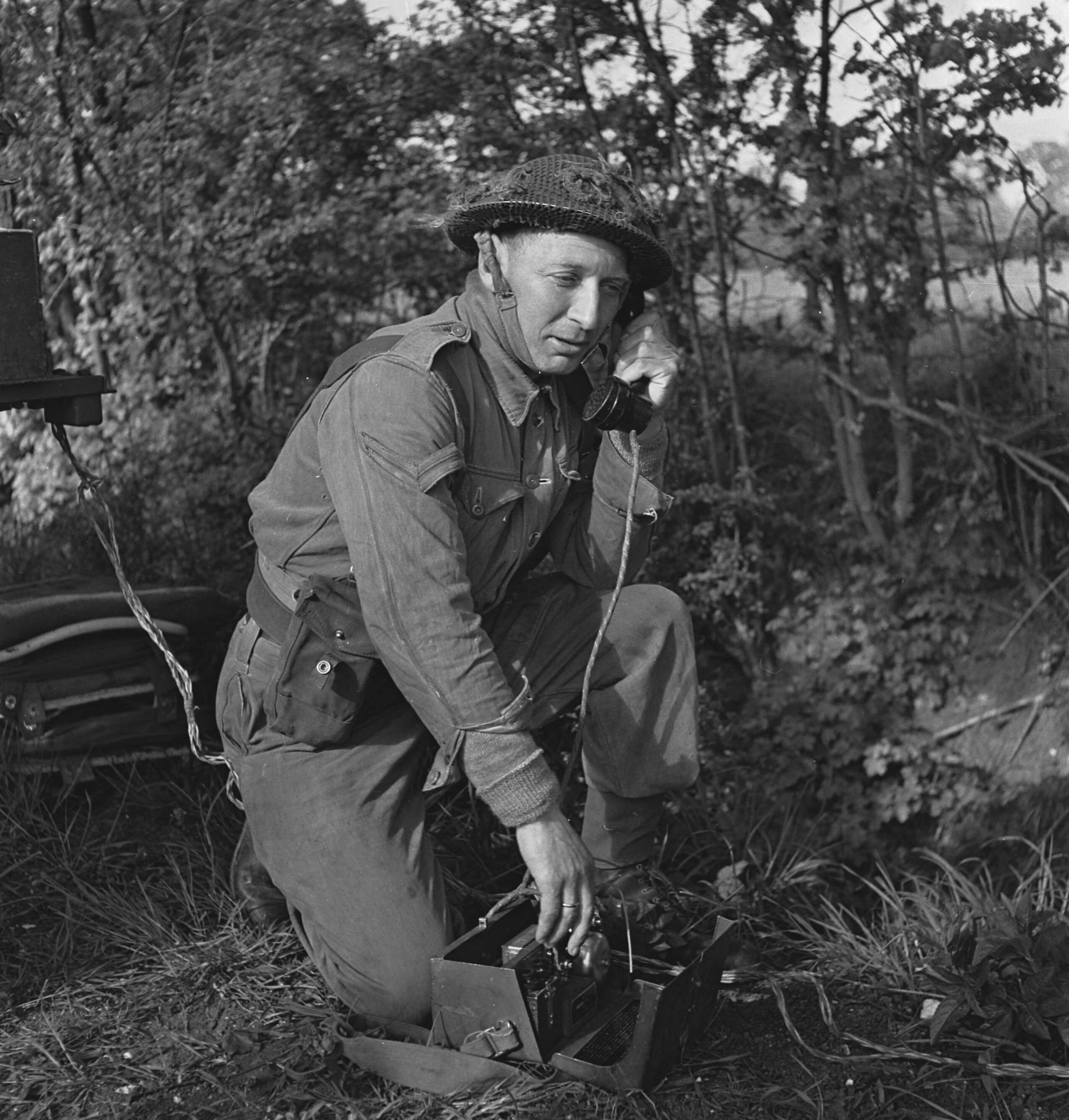 Koninklijke Nederlandse Brigade Prinses Irene in training. Veldtelefoon