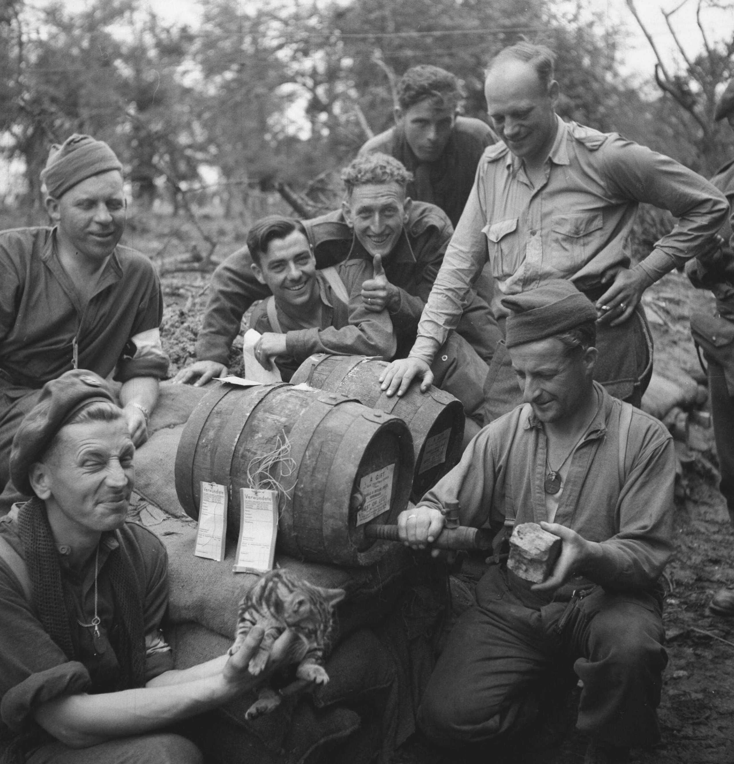 Koninklijke Nederlandse Brigade Prinses Irene. Frans-Canadese sector, Een wijn of cognacvat wordt aangeslagen?