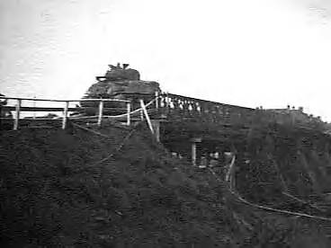 Koninklijke Nederlandse Prinses Irene Brigade in actie in België. Shermantank over noodbrug bij Beringen
