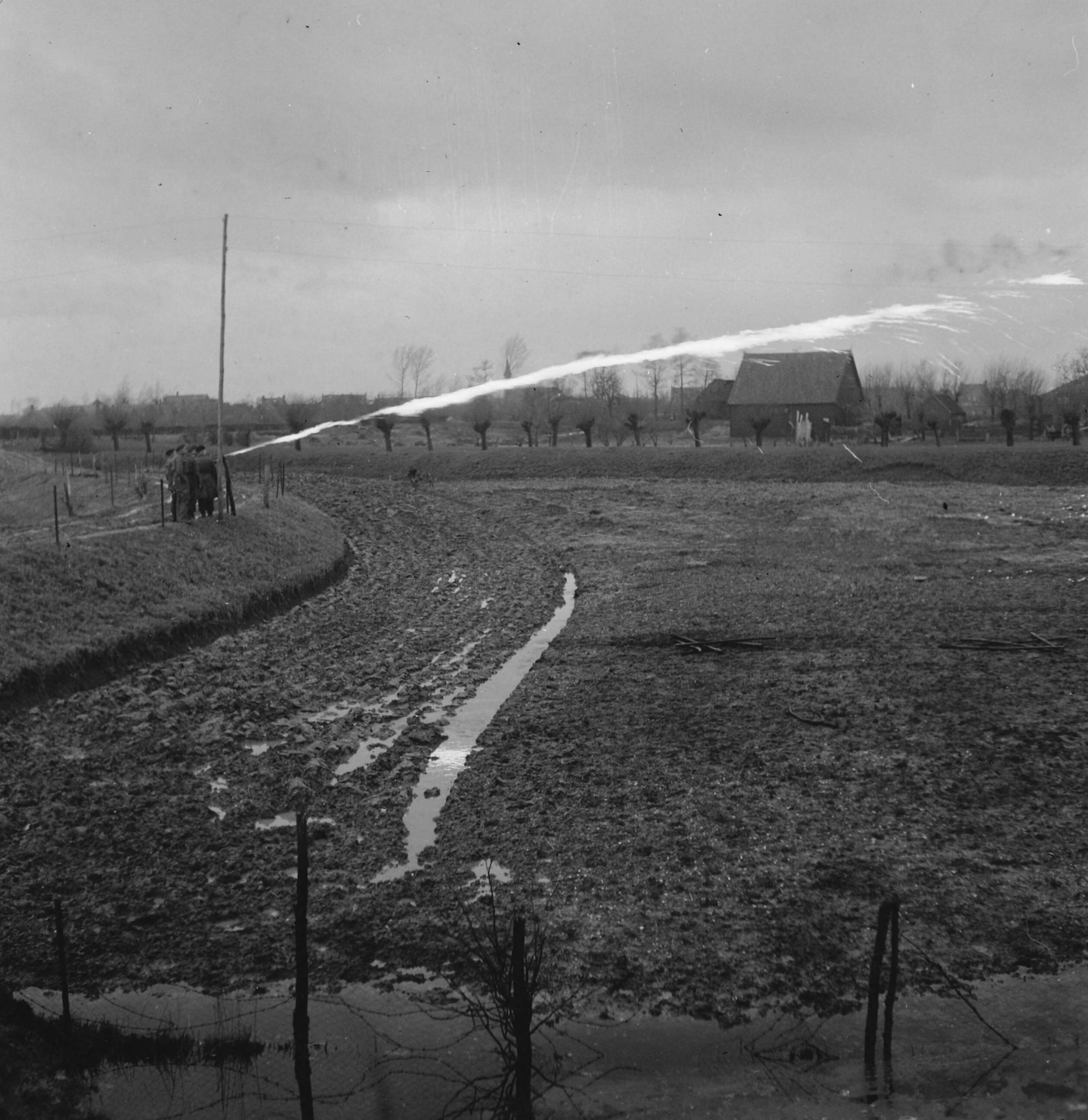 Prinses Irene Brigade neemt deel aan de bevrijding van Nederland. Nieuw wapen (vlammenwerper)