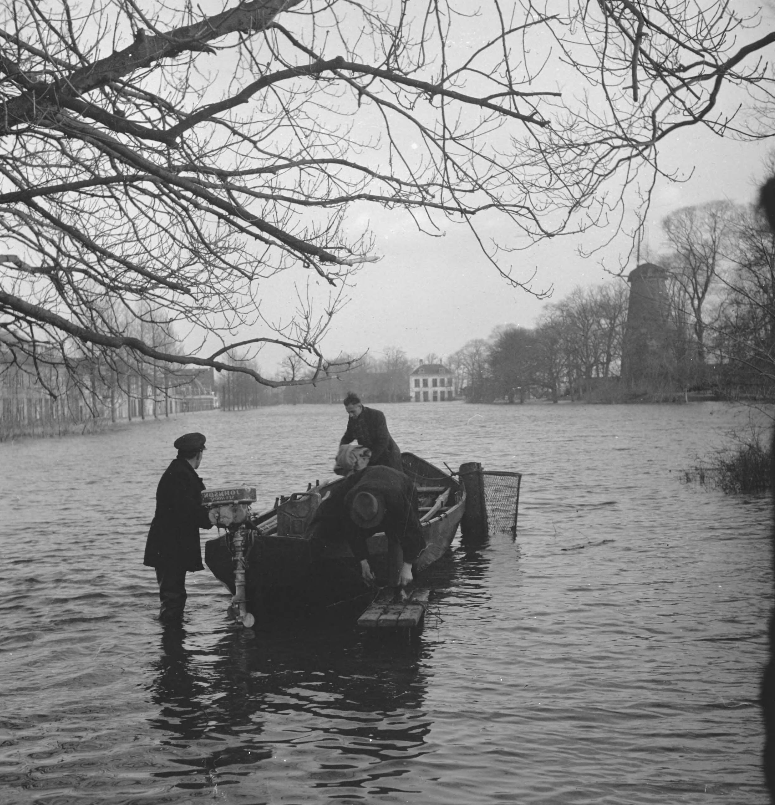 Indundaties in Zeeland een boot wordt in gereedheid gebracht