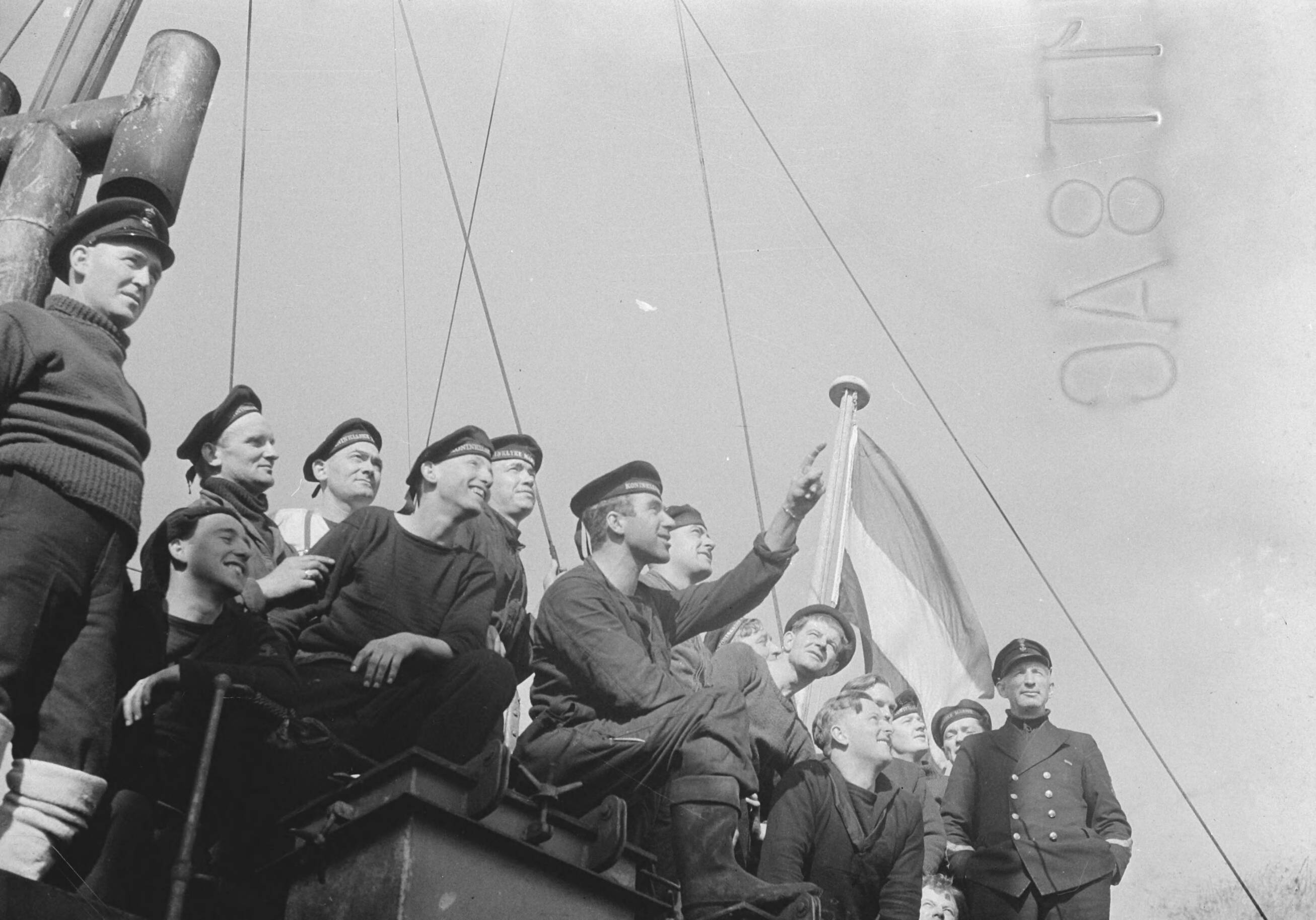 Bemanningsleden van een Nederlandse mijnenveger, voormalige opvarenden van de visserijvloot.