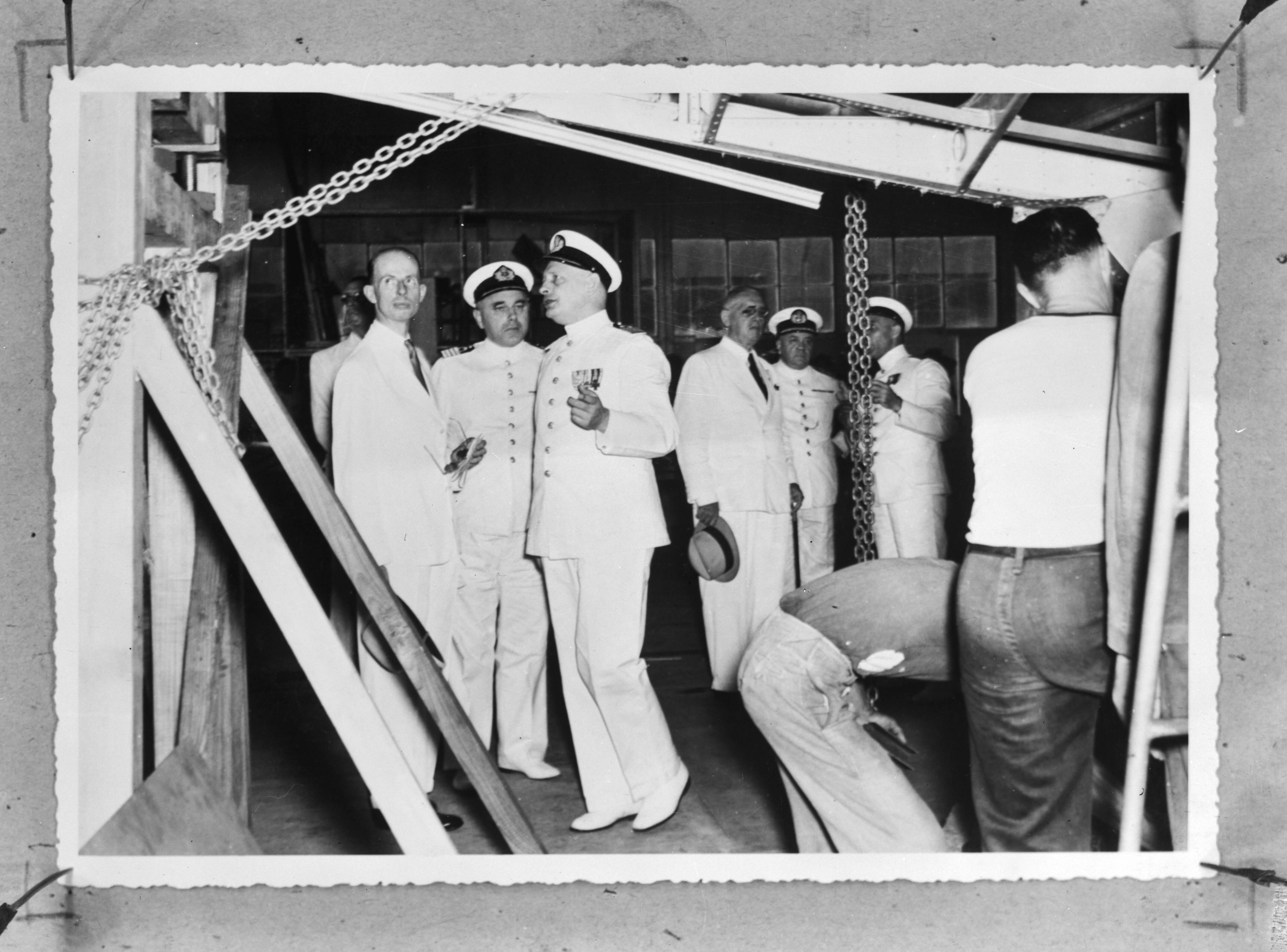 Bezoek van de ministers Welter (Koloniën) en van Kleffens (Buitenlandse Zaken) aan de marine installaties te Soerabaja.