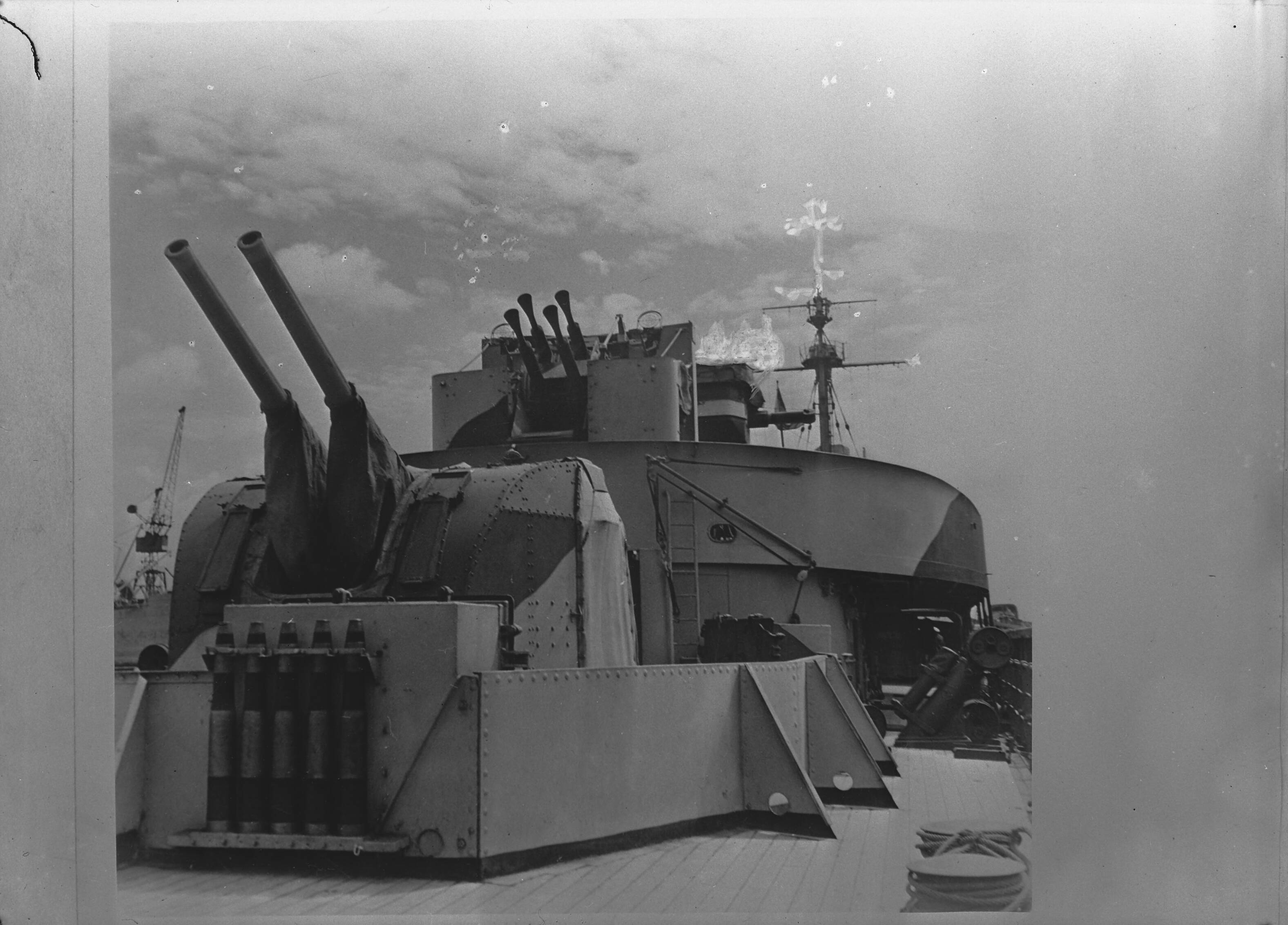 Hr. Ms. "Jacob van Heemskerck" terug in Groot-Brittannië na operaties in het Verre Oosten en de Middellandse Zee.