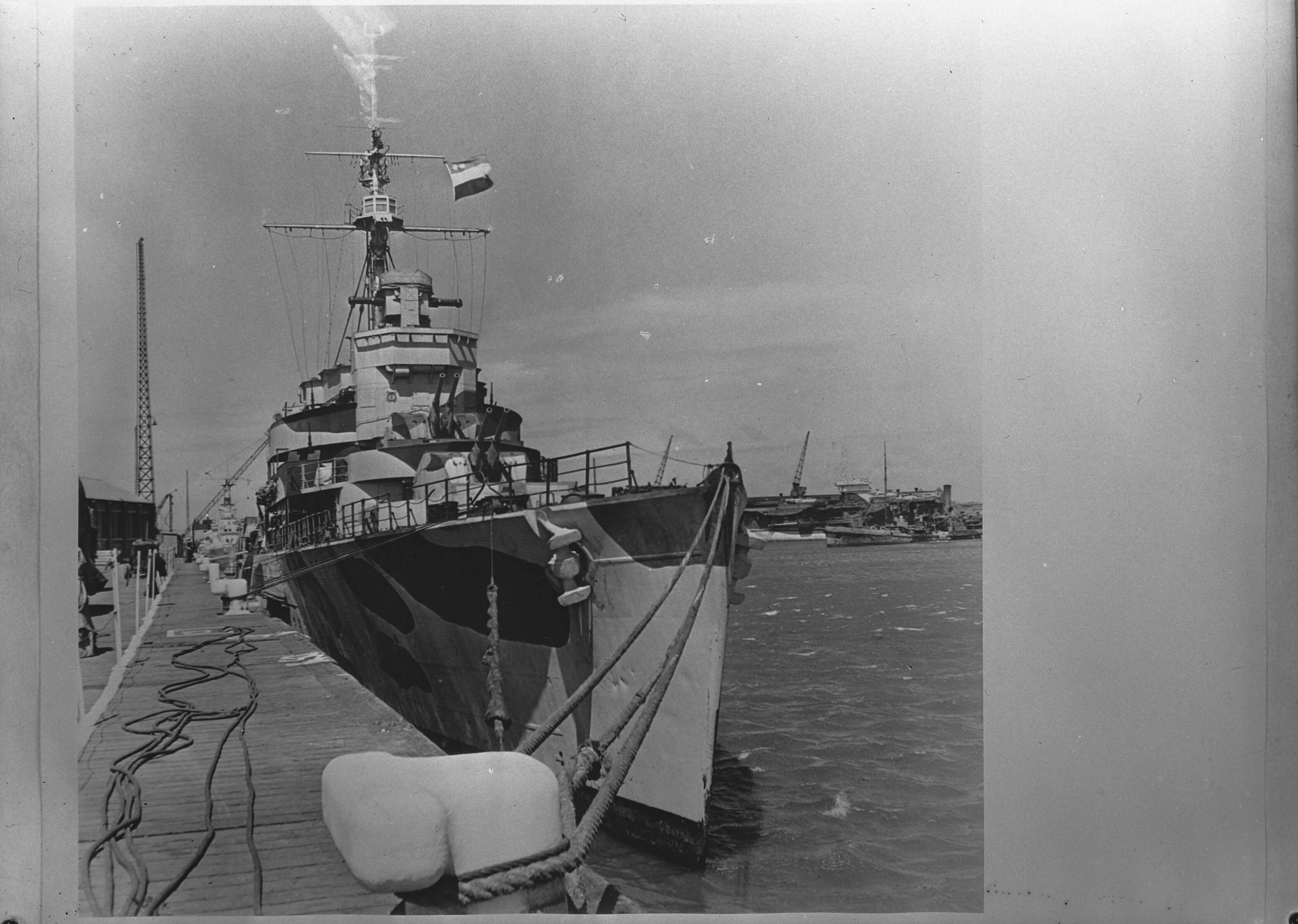 Hr. Ms. "Jacob van Heemskerck" terug in Groot-Brittannië na operaties in het Verre Oosten en de Middellandse Zee.