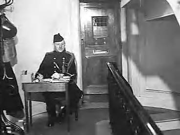 Serie Koninklijke Marechaussee in Engeland. Marechaussee Rijpma achter zijn bureau in Stratton House