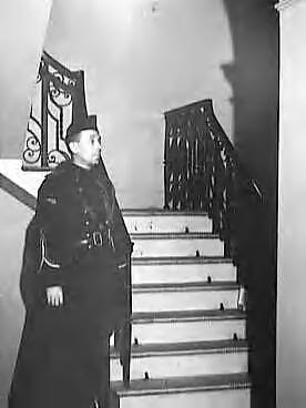 Serie Koninklijke Marechaussee in Engeland. Marechaussee op wacht bij de ingang van de schuilkelder van Stratton House