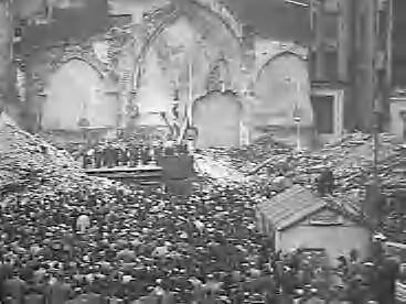 Ceremonie bij de door Duitse bommen verwoeste Nederlandse Kerk in Austin Friars (Londen) ter herdenking aan de Duitse inval