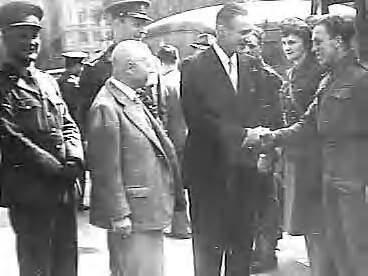 Minister-president Gerbrandy en de Amerikaanse ambassadeur Drexel Biddle bij een door de Verenigde Staten aan Nederland geschonken...