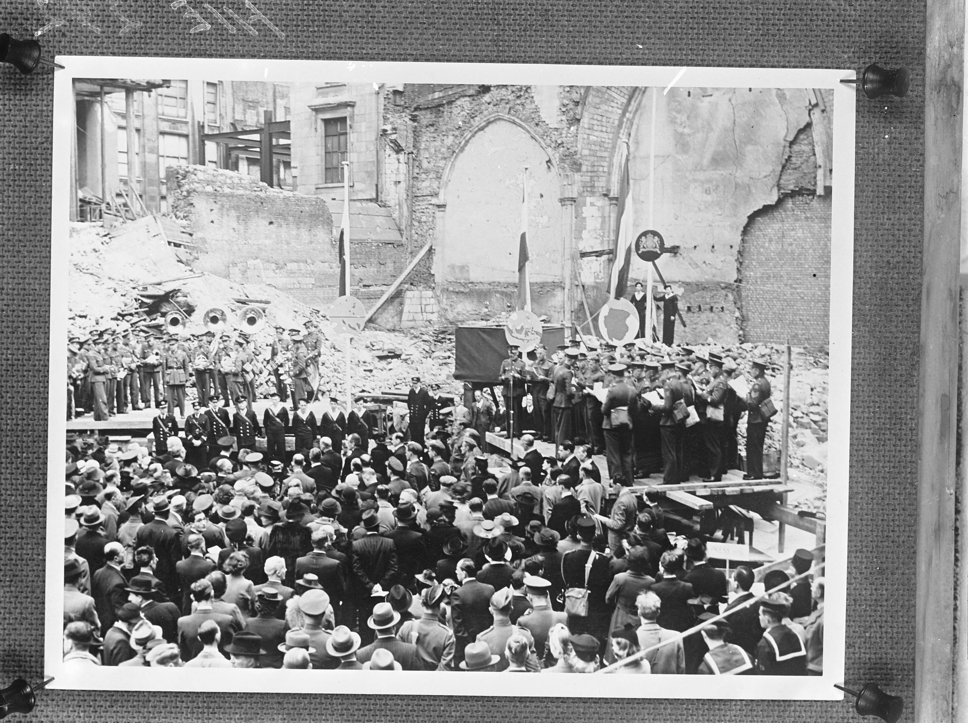 Herdenking van de Duitse inval van Nederland bij de ruïne van de Nederlandse kerk in Austin Friars