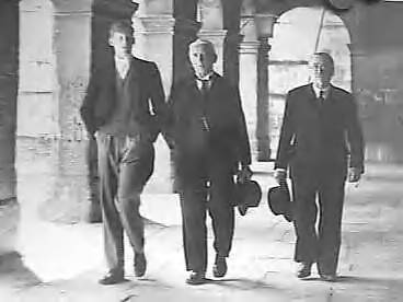 Vertegenwoordigers van 11 geallieerde landen bezochten Eton College. Oudere leerlingen fungeerden als gidsen. G. Bolkestein (minister van Onderwijs, Nederland) en J. Hoste (staatssecretaris van Onderwijs, België) lopen door de kloostergangen