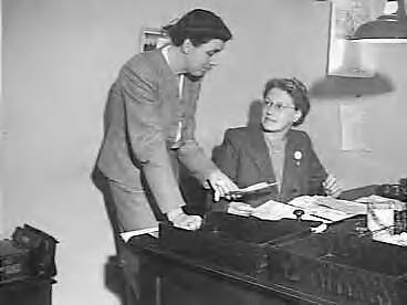 Het informatiebureau van het Londens Comité van het Nederlandse Rode Kruis (adres: Stratton House, Stratton Street, London W1). De twee directrices C.E. Smit-Dyserinck (links) en L.C.A Lewis geboren barones van Zuylen van Nyevelt in hun kantoor