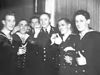 Serie: Receptie in Grosvenor House ter viering van de geboorte van prinses Margriet Franscisca. Minister van Sociale Zaken, J. van den Tempel (links), en de heer Rykens, voorzitter van "Nederland's Vrijheidsdag" eten beschuit met muisjes