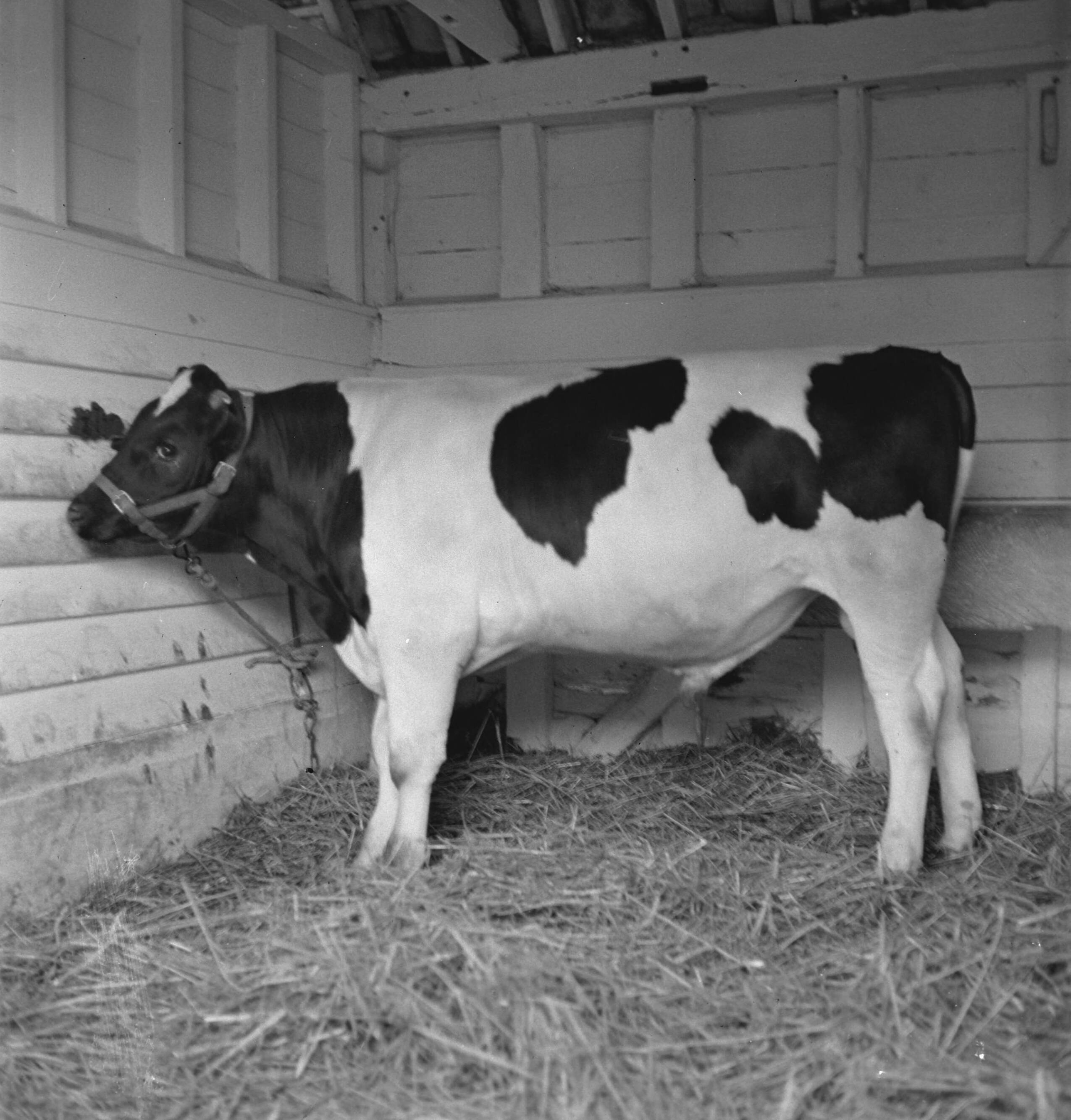 In 1938 Holland had over 1,5 million milk cows, producing on an average 1000 gallons of milk each p.a., with a fat content of 3.56. Many champion cows and bulls have been exported to establish new herds in several countries. The two oldest established herds in England are the Terling and the Lavenham herd, numbering over 1500 head at Lord Ralleigh's farms in Essex. These herds - attested and tuberculin tested - have contained many champions, winning first prizes at dairy shows al over the country. 8 month old bull calf also bred from Grey family