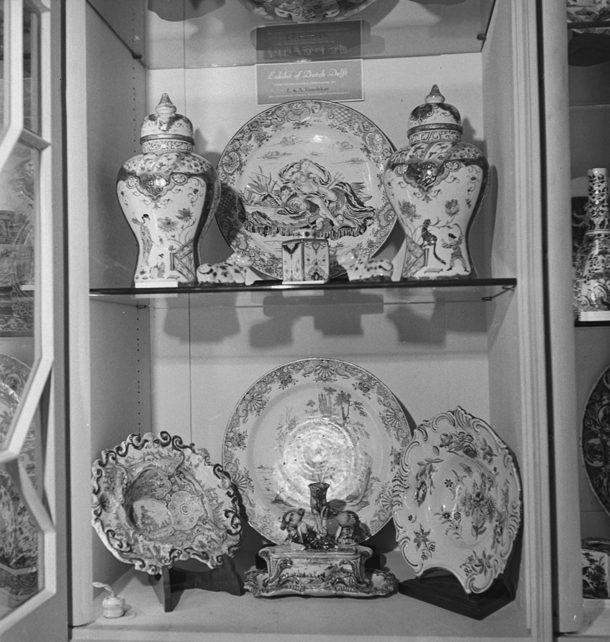 Delft Porcelain, loaned by mr. Vanderkar, exhibited at Netherlands House, Charles Street, London.