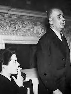 Feestelijke samenkomst van de Regeringsvoorlichtingsdienst? in Londen. Adriaan Pelt, directeur van de Regeringsvoorlichtingsdienst ( Netherlands Government Information Bureau) in Londen, spreekt dankwoord. Links van hem een officier van het Vrouwen Hulp Korps Rutten?