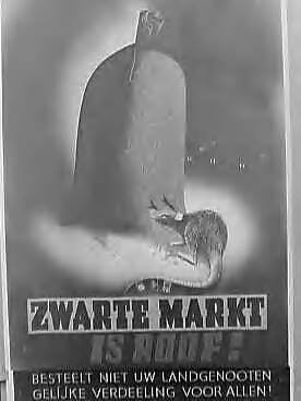 Affiches en pamfletten Militair Gezag "Zwarte Markt is roof. Besteelt niet uw landgenooten. Gelijke verdeeling voor allen!"