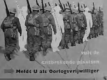 Affiches en pamfletten Tweede Wereldoorlog; "Vult de ontbrekende plaatsen. Meldt U als Oorlogsvrijwilliger"