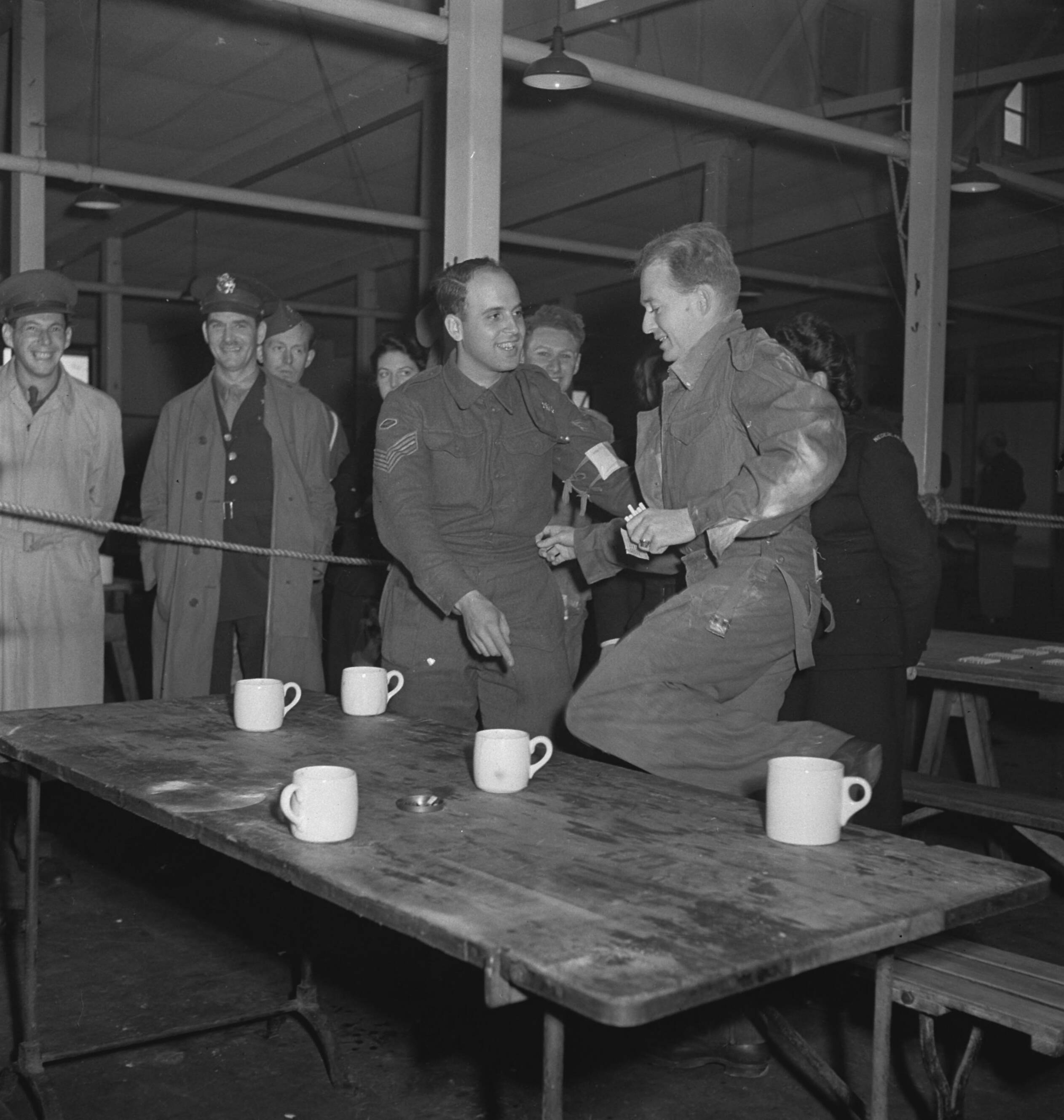 Oefening van frontsecties van het het Militair Gezag en het Vrouwen Hulp Korps in het administreren en toelaten van repatrianten i...