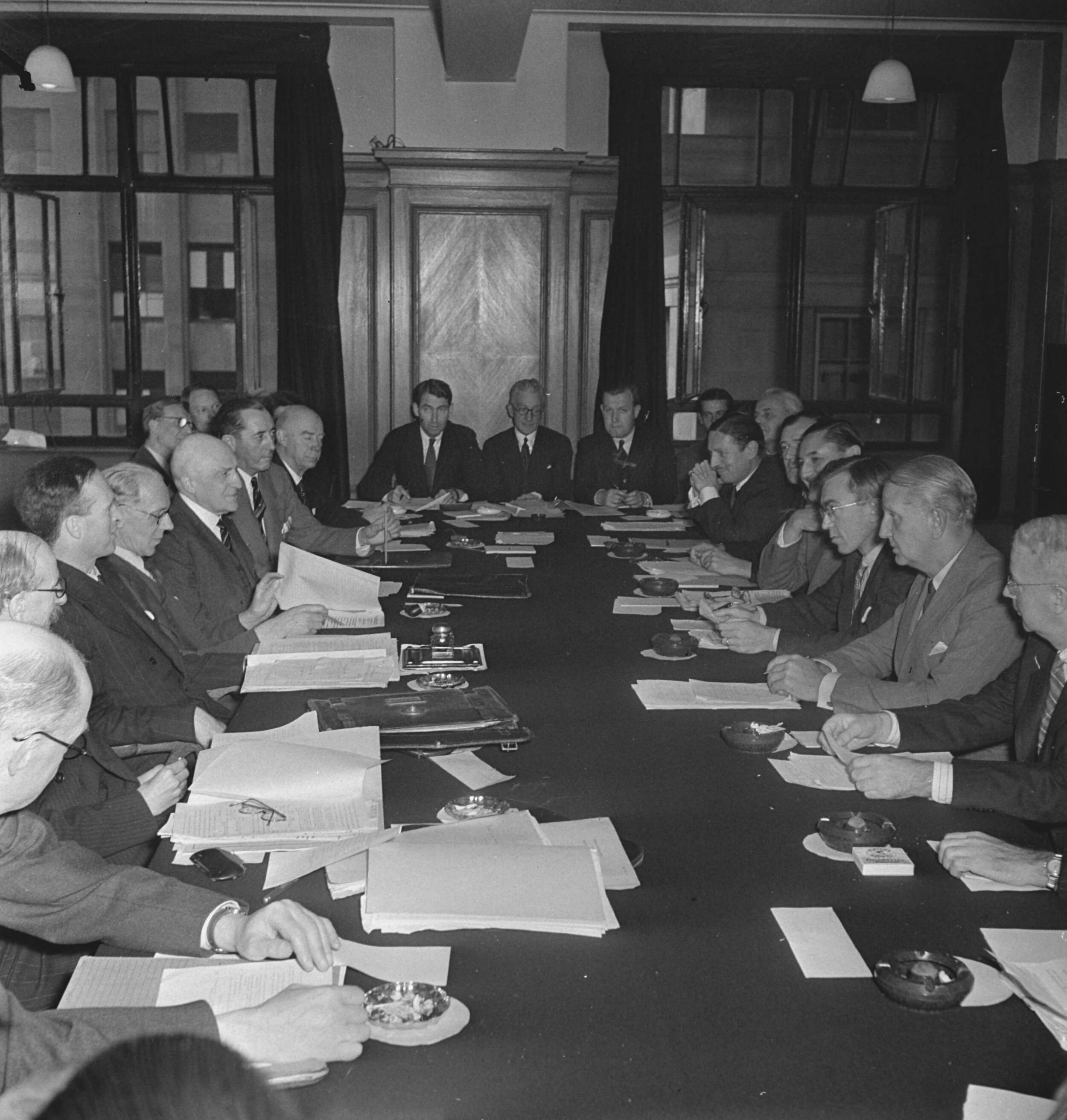 Naoorlogse rubberproblemen worden besproken op een conferentie in Londen; de delegaties van de Verenigde Staten, Groot-Brittannië en Nederland