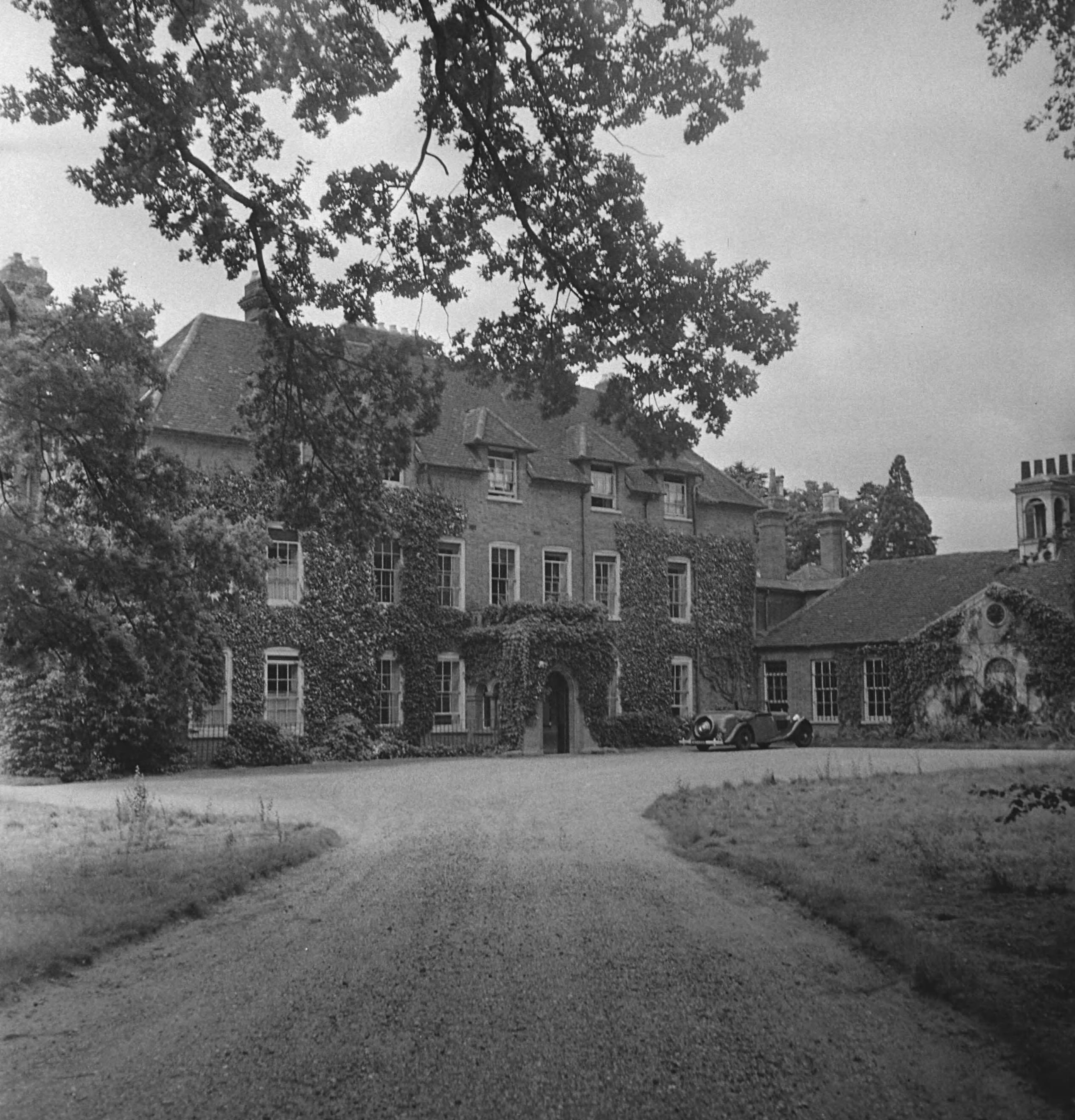 Voorzijde Stubbings House. Rechts staat een auto geparkeerd