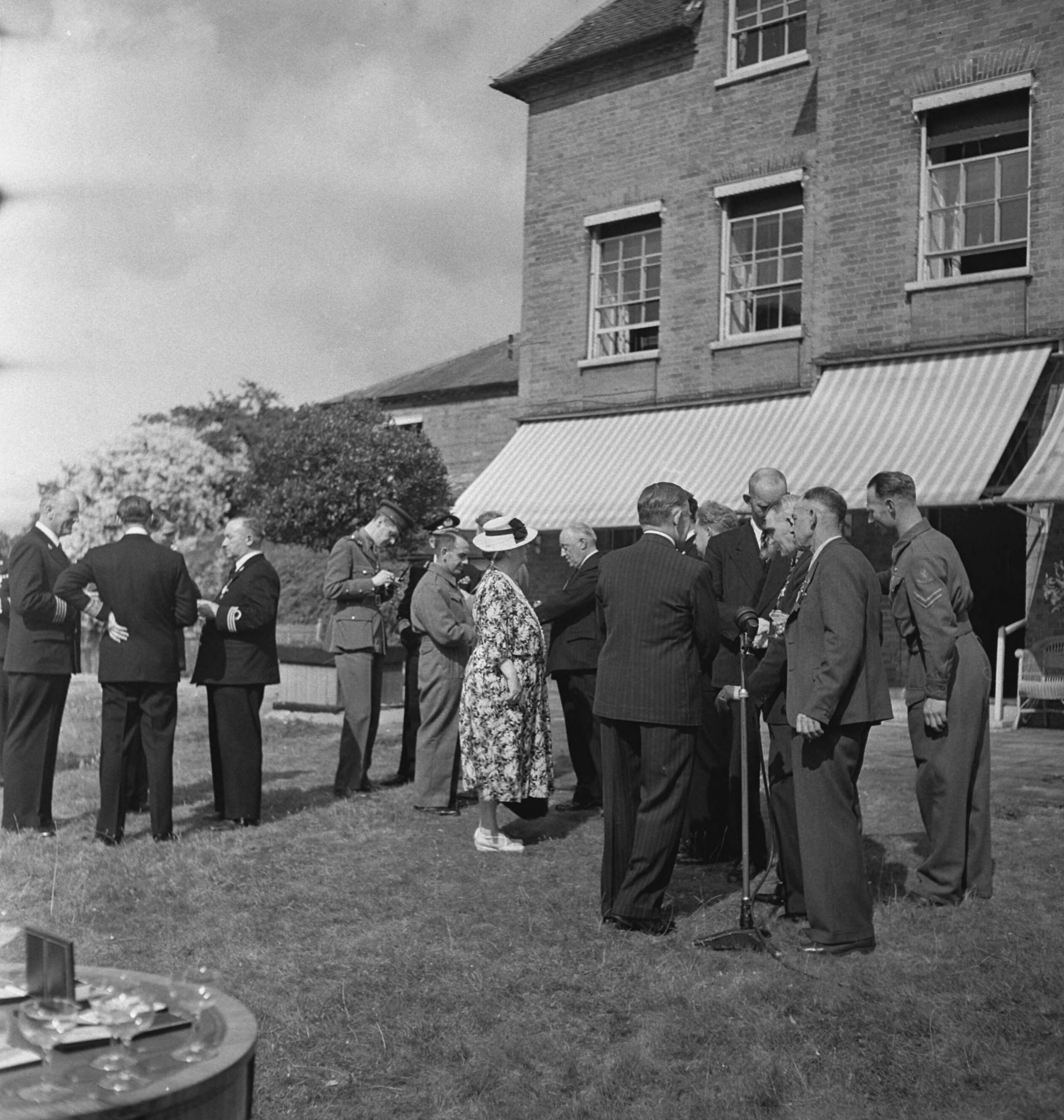 In de tuin van Stubbings House. Koningin Wilhelmina en prins Bernhard spreken met de gedecoreerden