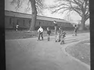 Nederlandse kinderen("bleekneusjes")in Conventry tijdens bezoek van koningin Wilhelmina. Spelend met autopeds geschonken door de bemanning van de "Jacob van Heemskerck"