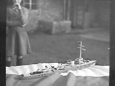 Nederlandse kinderen("bleekneusjes")in Conventry tijdens bezoek van koningin Wilhelmina. Model van de "Jacob van Heemskerck"