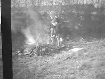 Nederlandse kinderen("bleekneusjes")in Conventry tijdens bezoek van koningin Wilhelmina. Bezig met een vuur te maken
