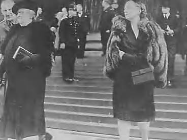 Koningin Wilhelmina en prinses Juliana bezoeken rouwdienst in de St. Paul's Cathedral te Londen, n.a.v. overlijden van president Roosevelt
