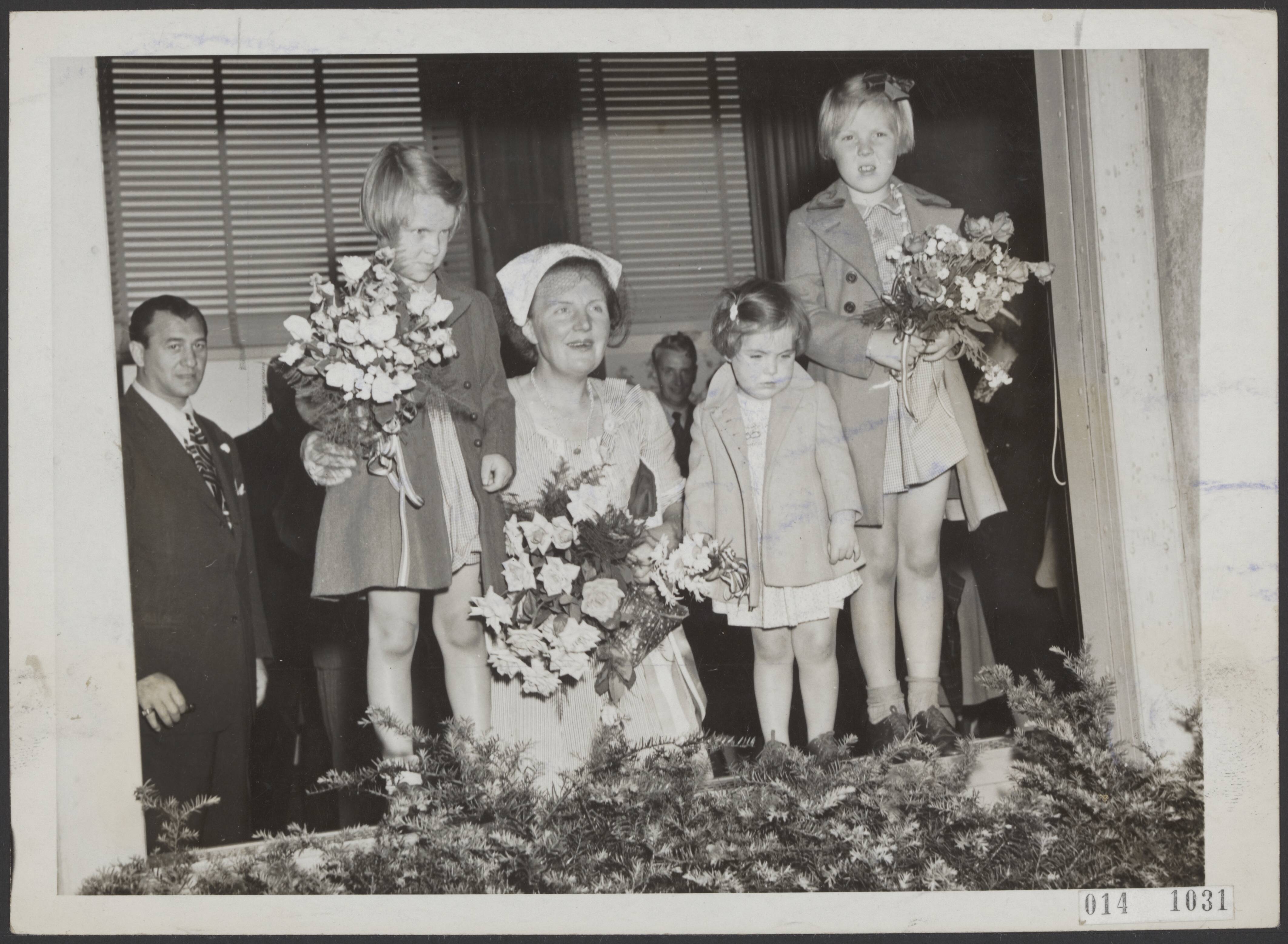 Geen bijschrift Prinses Juliana met de drie prinsessen bij een open raam Canada?